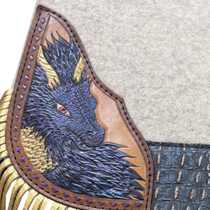 Limited Edition natural pad with hand-tooled and hand-painted dragon corner plates, the Dragon Rider – Black is designed for riders who want bold, high-contrast style backed by proven 5 Star performance. Featuring dramatic black detailing and fierce dragon artwork, this pad delivers a powerful, unmistakable presence in and out of the arena.