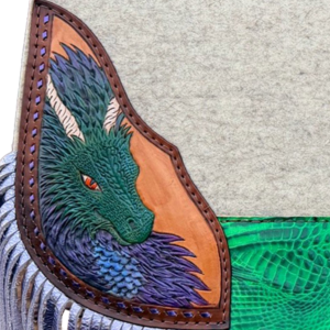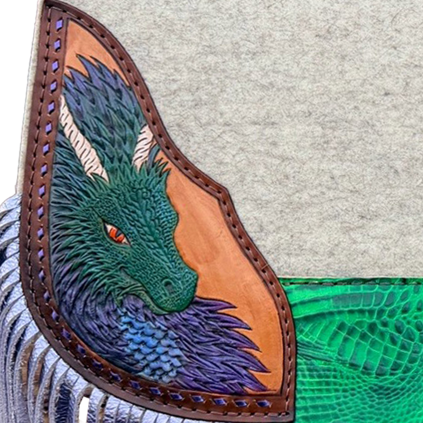 Limited Edition natural pad with hand-tooled and hand-painted dragon corner plates, the Dragon Rider – Green is built for riders who want bold, unforgettable style backed by proven 5 Star performance. Featuring vivid green detailing and fierce dragon artwork, this pad brings a powerful, eye-catching presence to the arena while delivering the comfort and protection serious competitors demand.