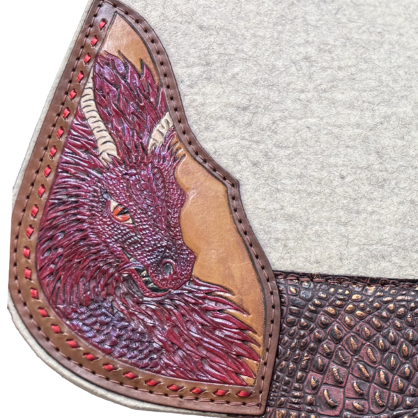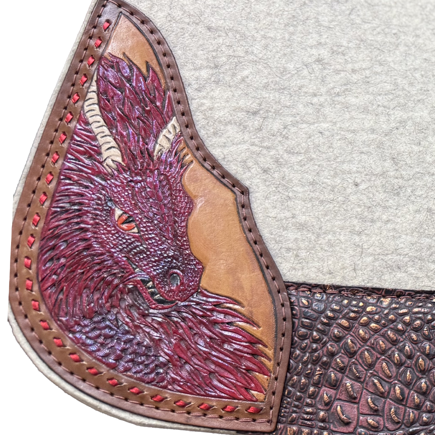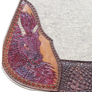 Limited Edition natural pad with hand-tooled and hand-painted dragon corner plates, the Dragon Rider – Red is built for riders who want bold arena presence backed by proven 5 Star performance. Featuring fierce red detailing and striking dragon artwork, this pad makes an unforgettable statement while delivering the comfort and protection serious competitors demand.