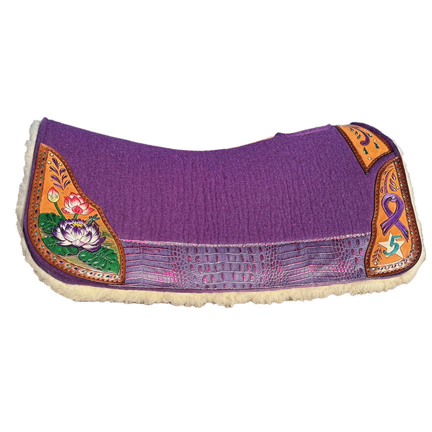 Limited Edition custom saddle pad hand tooled and hand painted with buck stitched Lotus Flower corner plates.
